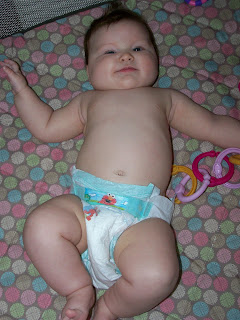Avery - oh my sweet, sweet baby! I can't believe she is going to be four months old this week. Where does time go? Avery is generally a very good, happy girl. She is very social and loves to be out and about where she gets lots of attention. She "talks" to all the moms at cheerleading practice. She loves to babble, loves to eat her hands and loves to stick out her tongue. She has rolled over a few times from her stomach to her back and gets about 75% of the way over from her back to her belly. She is big!